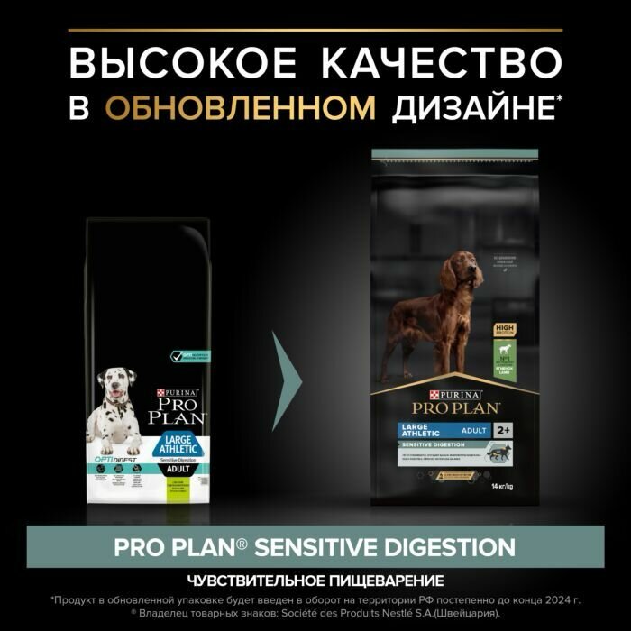 Сухой корм для собак Pro Plan Optidigest, при чувствительном пищеварении, ягненок, с рисом 14 кг (для крупных пород) 12+2кг информация:
