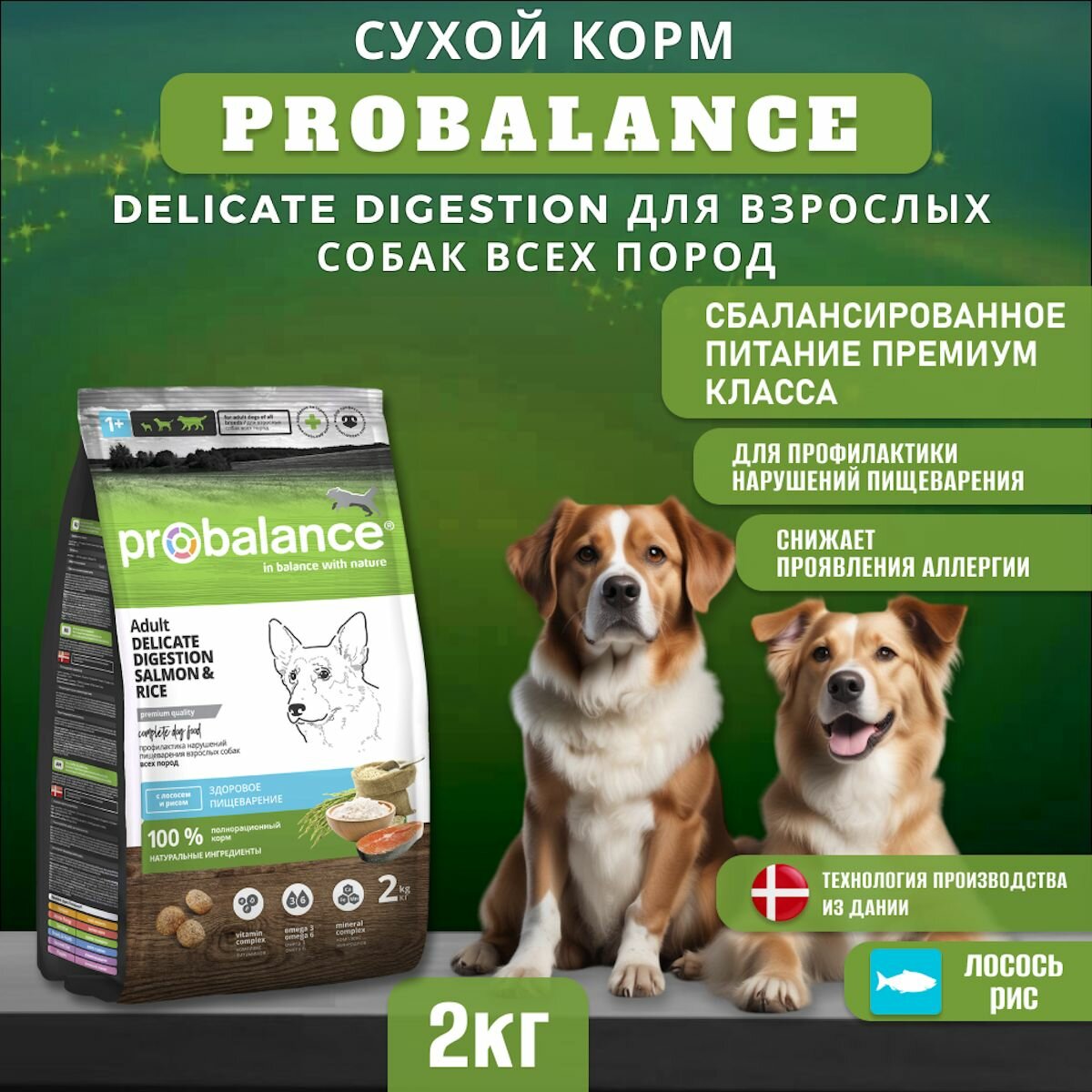 Probalance для собак всех пород Adult Delicate Digestion, с лососем и рисом, мешок 2 кг информация: