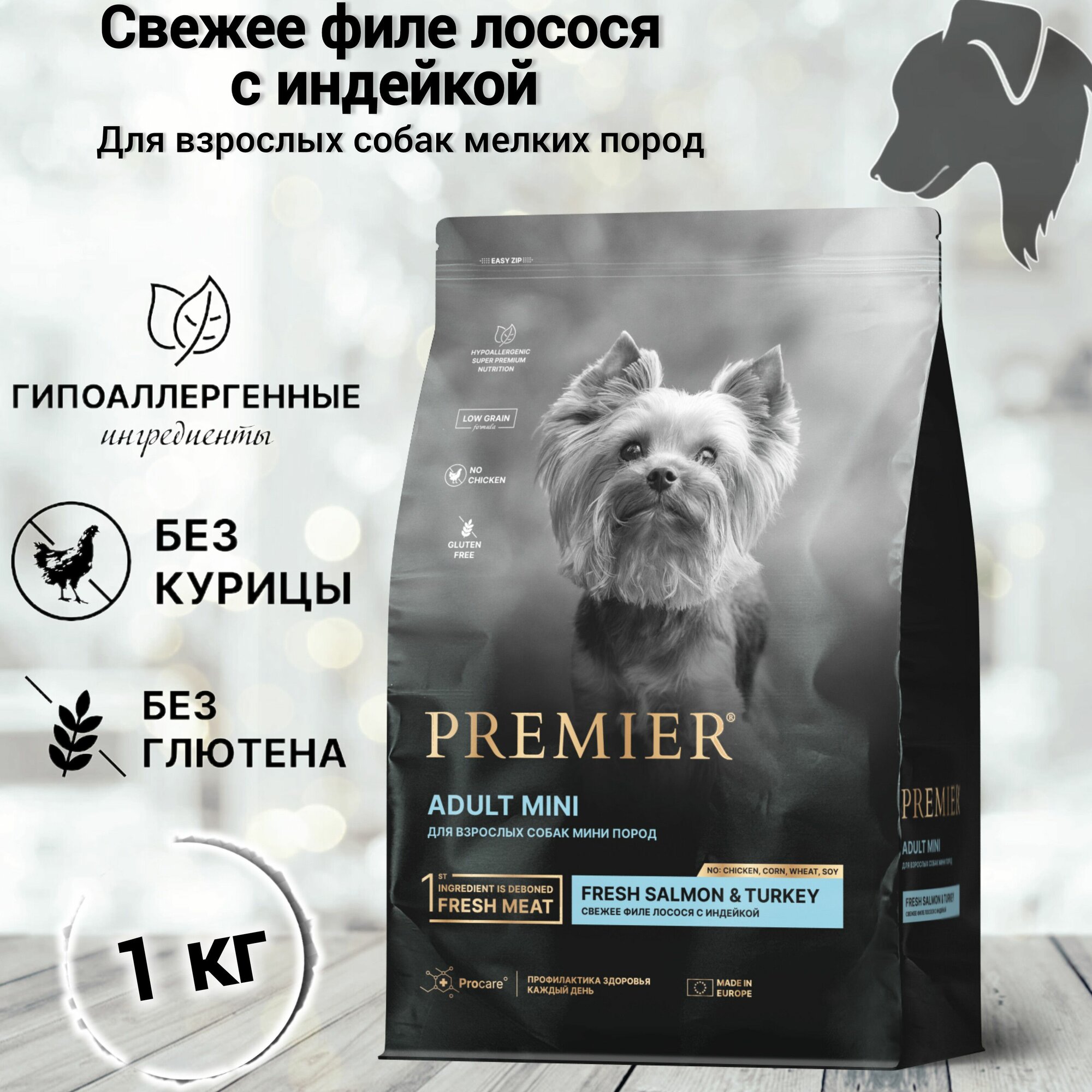 10 цен на Premier Dog Adult Mini сухой корм для взрослых собак мини пород Лосось и индейка, 1 кг.