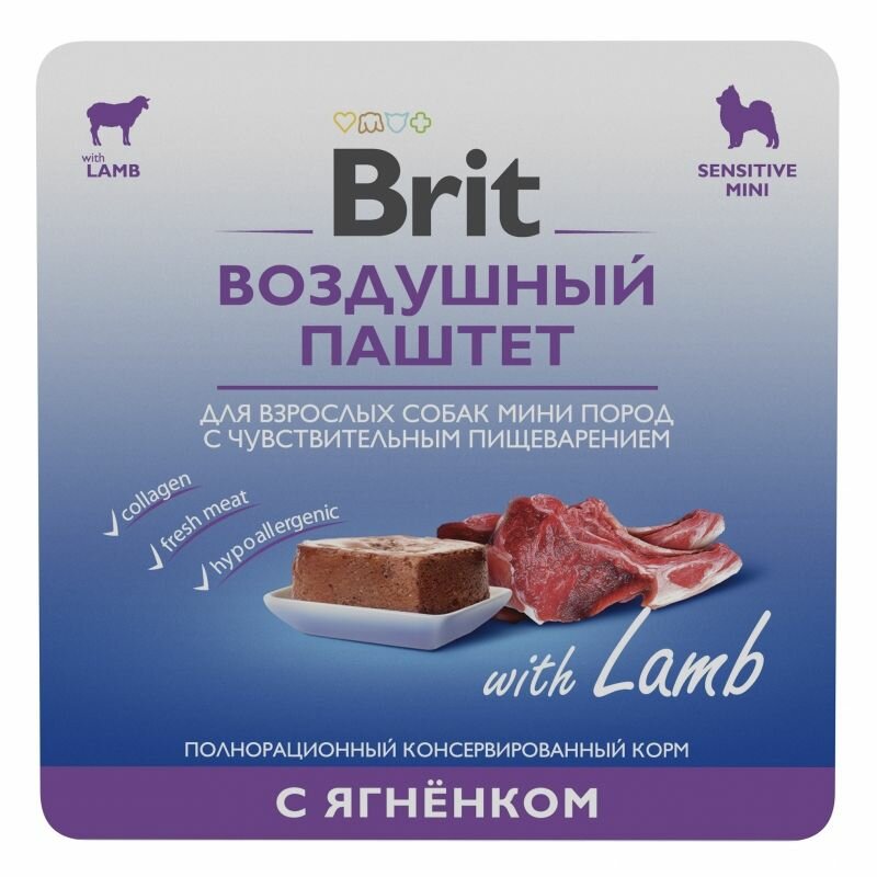Brit воздушный паштет для собак мини пород с чувствительным пищеварением Ягненок, 100 г. упаковка 14 шт
