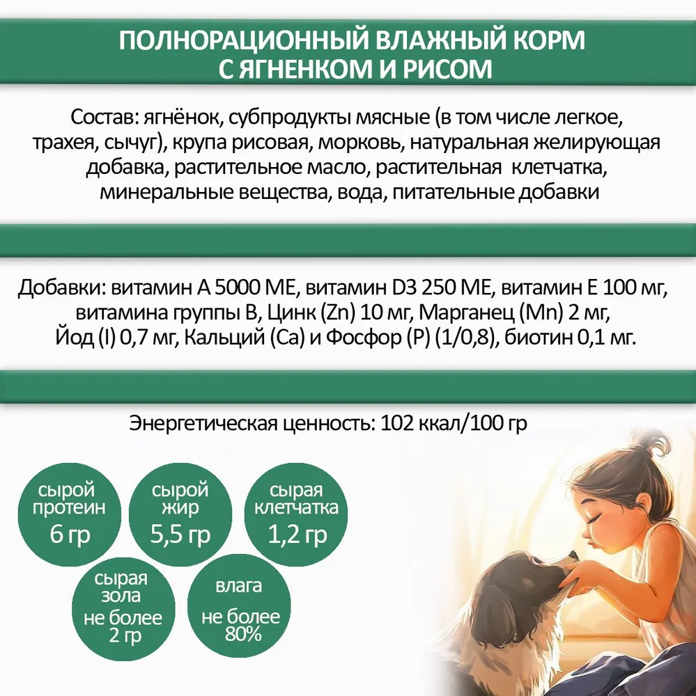 Влажный корм Edel для любых собак и щенков, ягнёнок с рисом 850гр информация: