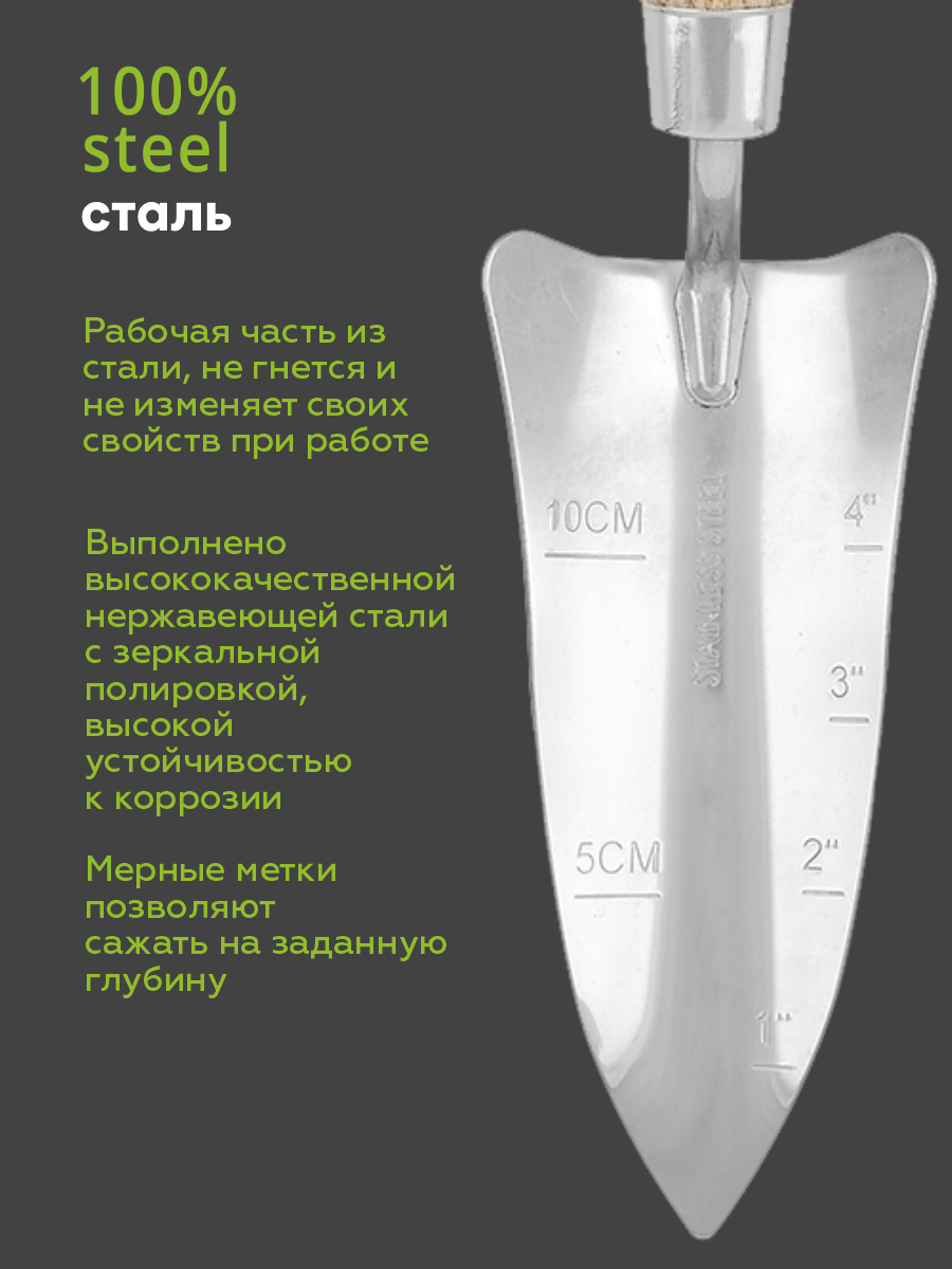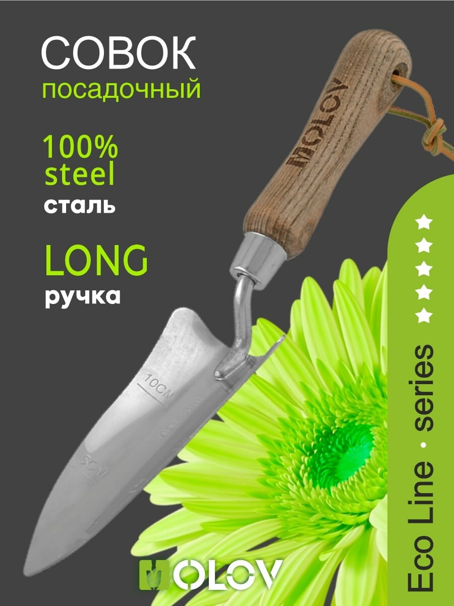 10 цен на Совок Посадочный узкий нерж.сталь с дерев.ручкой `OLOV Эколайн`