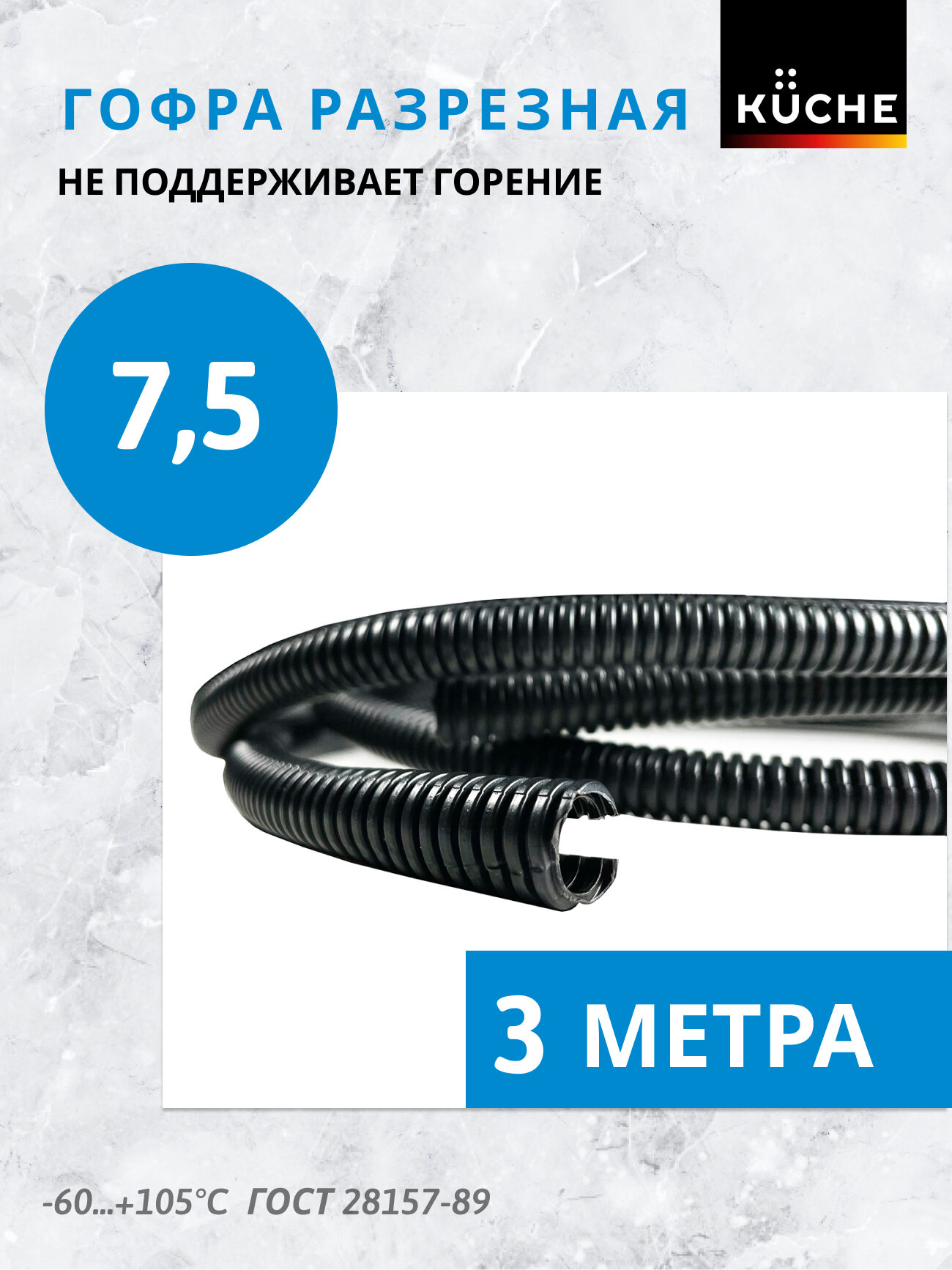 Гофра для укладки проводов разрезная негорючая ПП тип В внутренний диаметр 7,5 мм, длина 3 м информация: