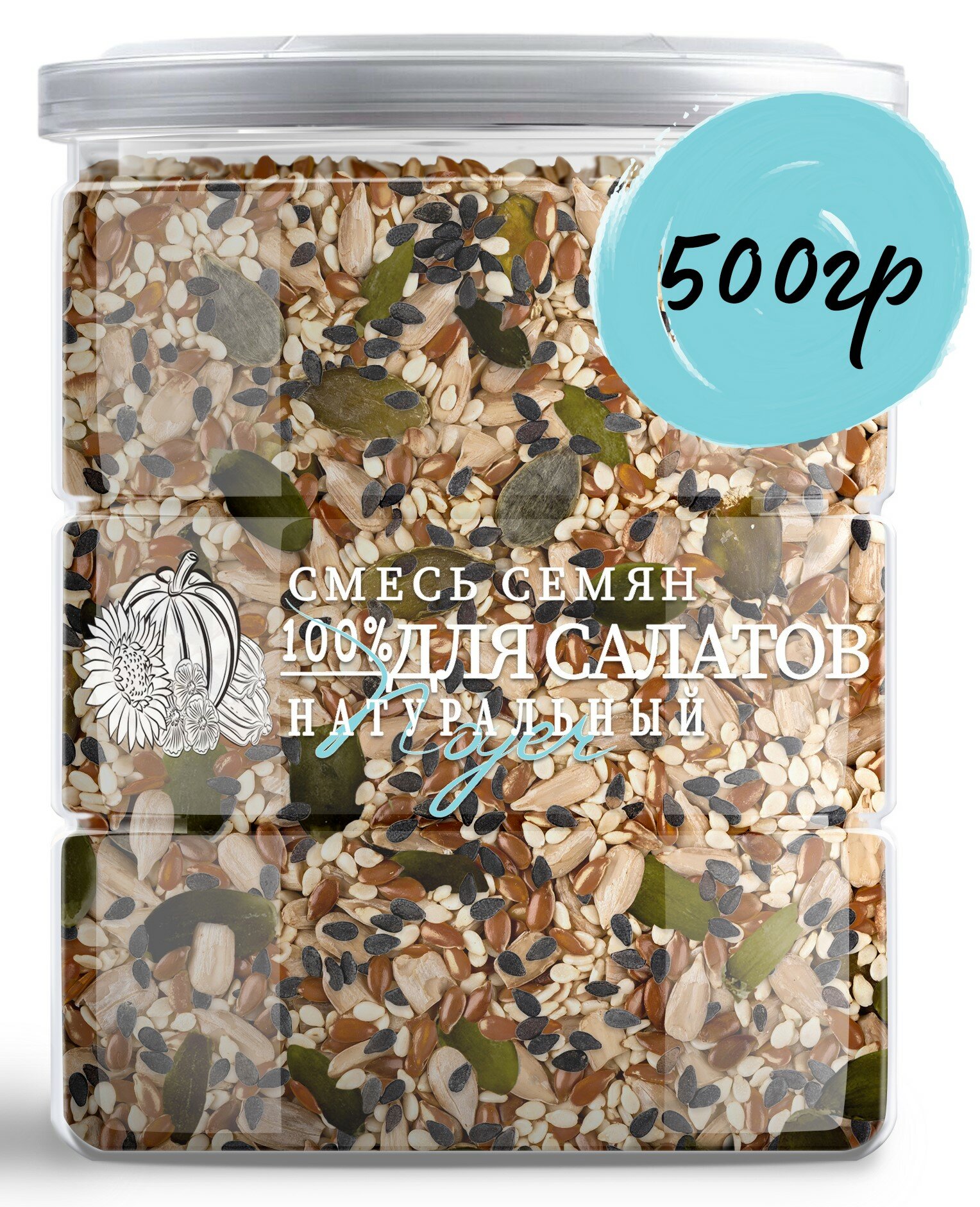 Смесь семян для салатов 500 гр., выпечки, Семена льна, кунжута белого, черного, тыквы, подсолнечника, NOYER информация: