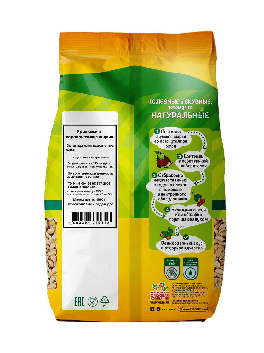 Семечки Дары природы подсолнечника очищенные без обжарки, 1 кг информация: