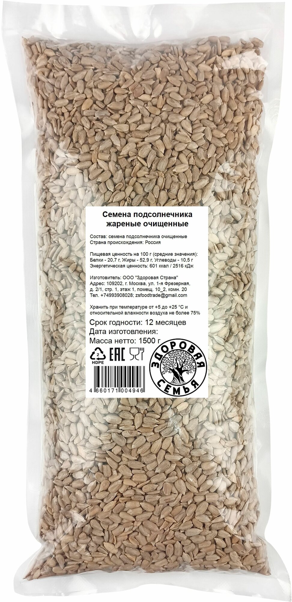 Семечки подсолнечника жареные очищенные Здоровая Семья, 1,5 кг (1500 г) информация: