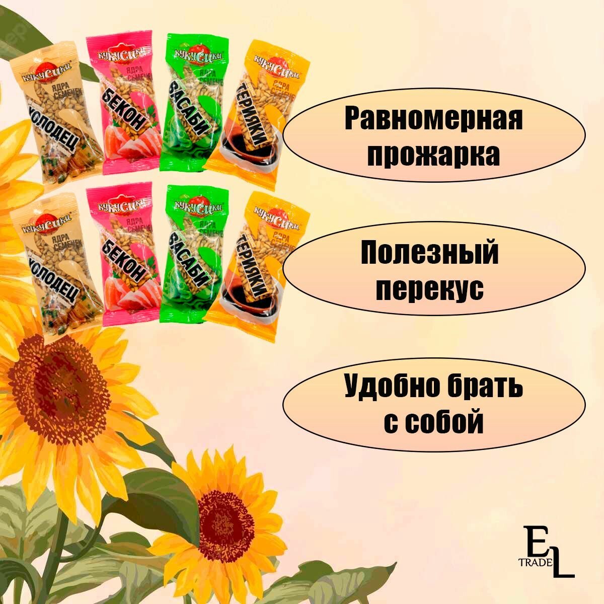 10 цен на Ядра подсолнечника очищенные жареные 40 грамм Микс вкусов кукусики 8 пачек (320 грамм)