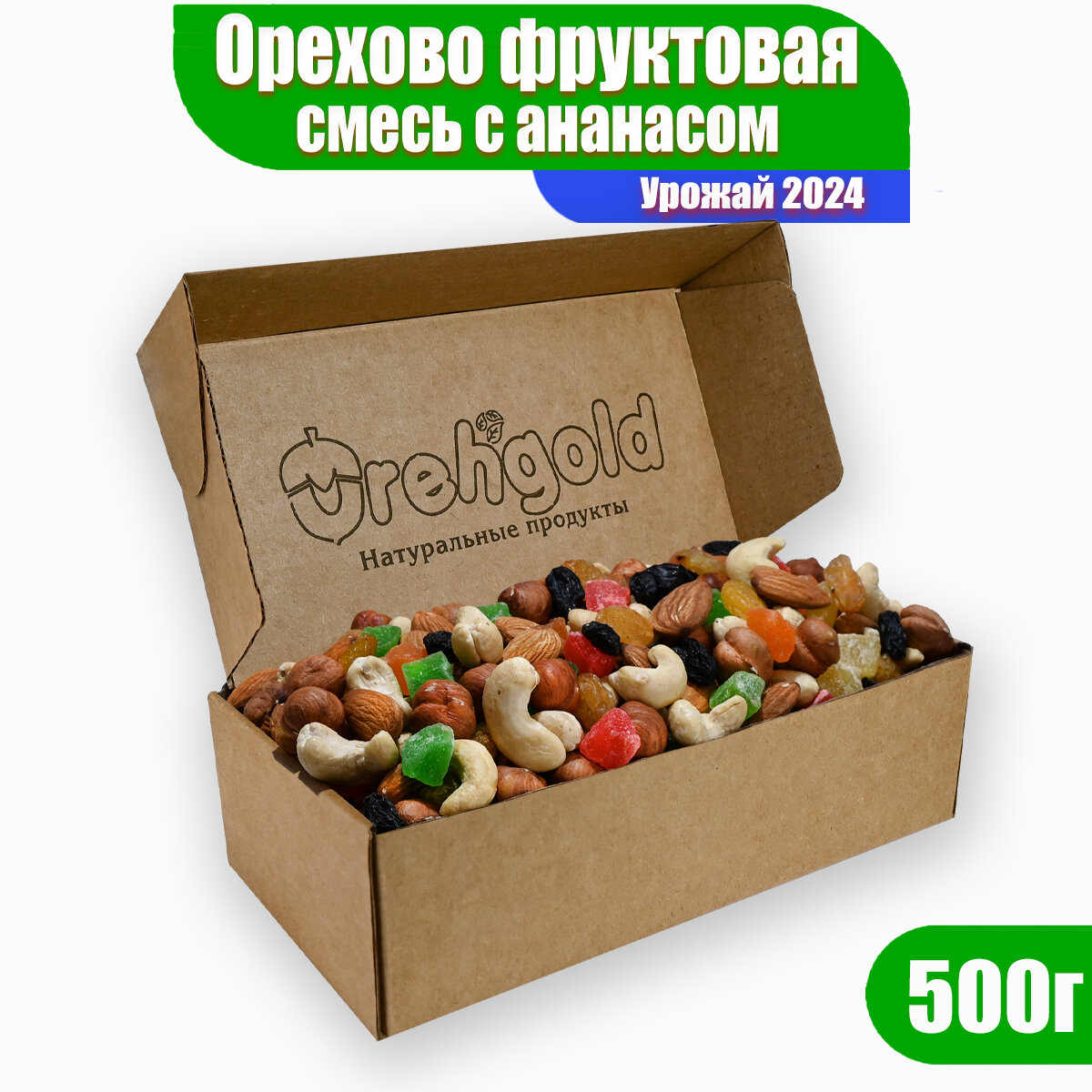 10 цен на Смесь орехово-фруктовая №3, Миндаль/Кешью/Изюм/Ананас цукаты/Фундук OrehGold, 500г