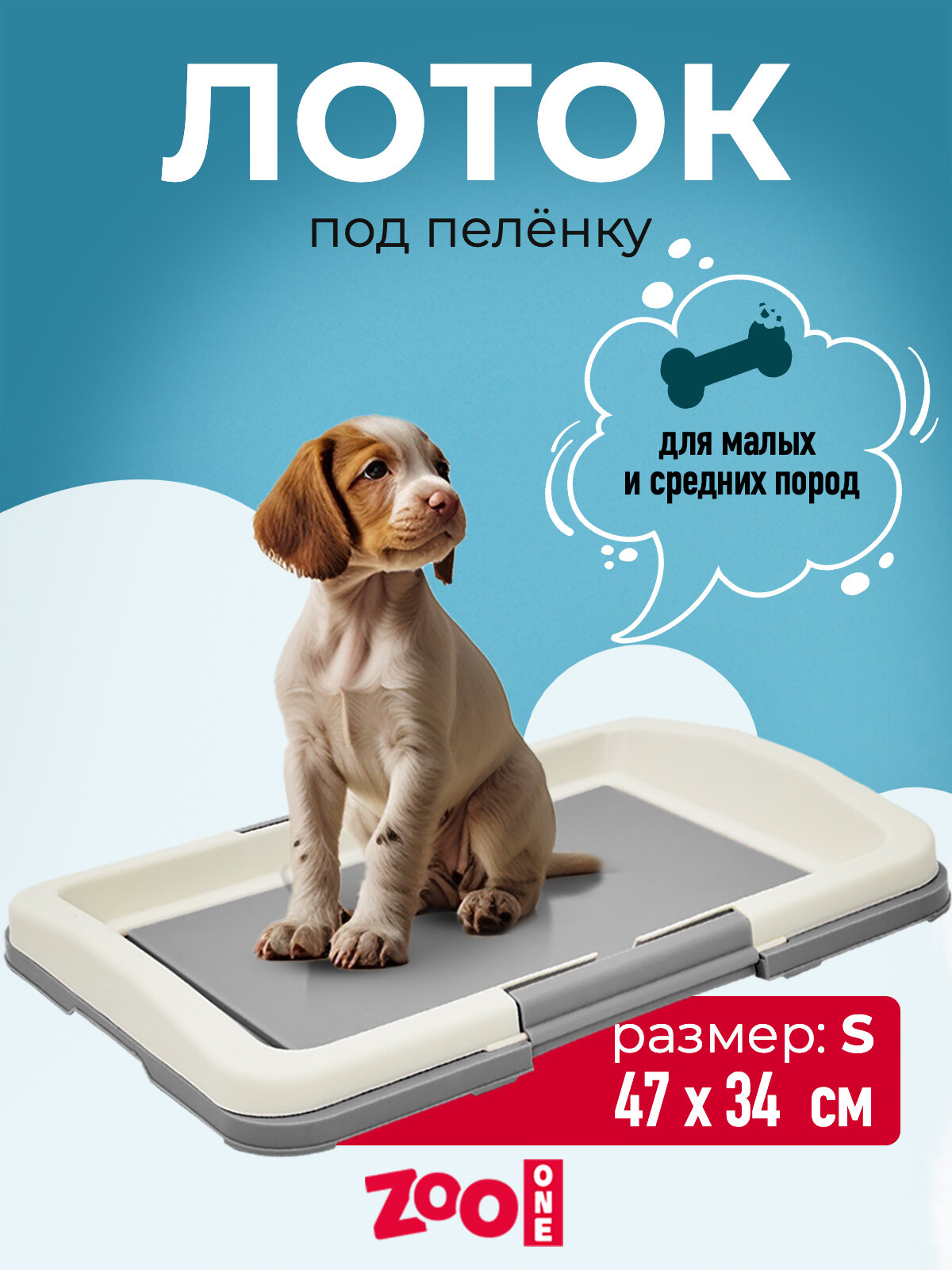 Туалет лоток для собак Zoo One под одноразовую пеленку (японский стиль), малый 47*34*6 см, серый + белый, P102-04 1 001 ₽