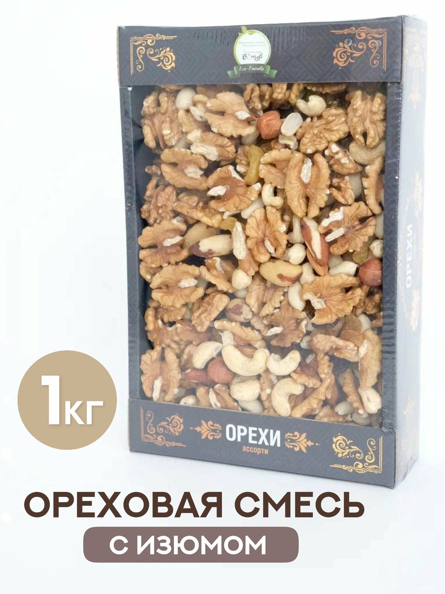 Смесь орехов с изюмом Бонур 1 кг / Натуральные сушеные орехи ассорти информация: