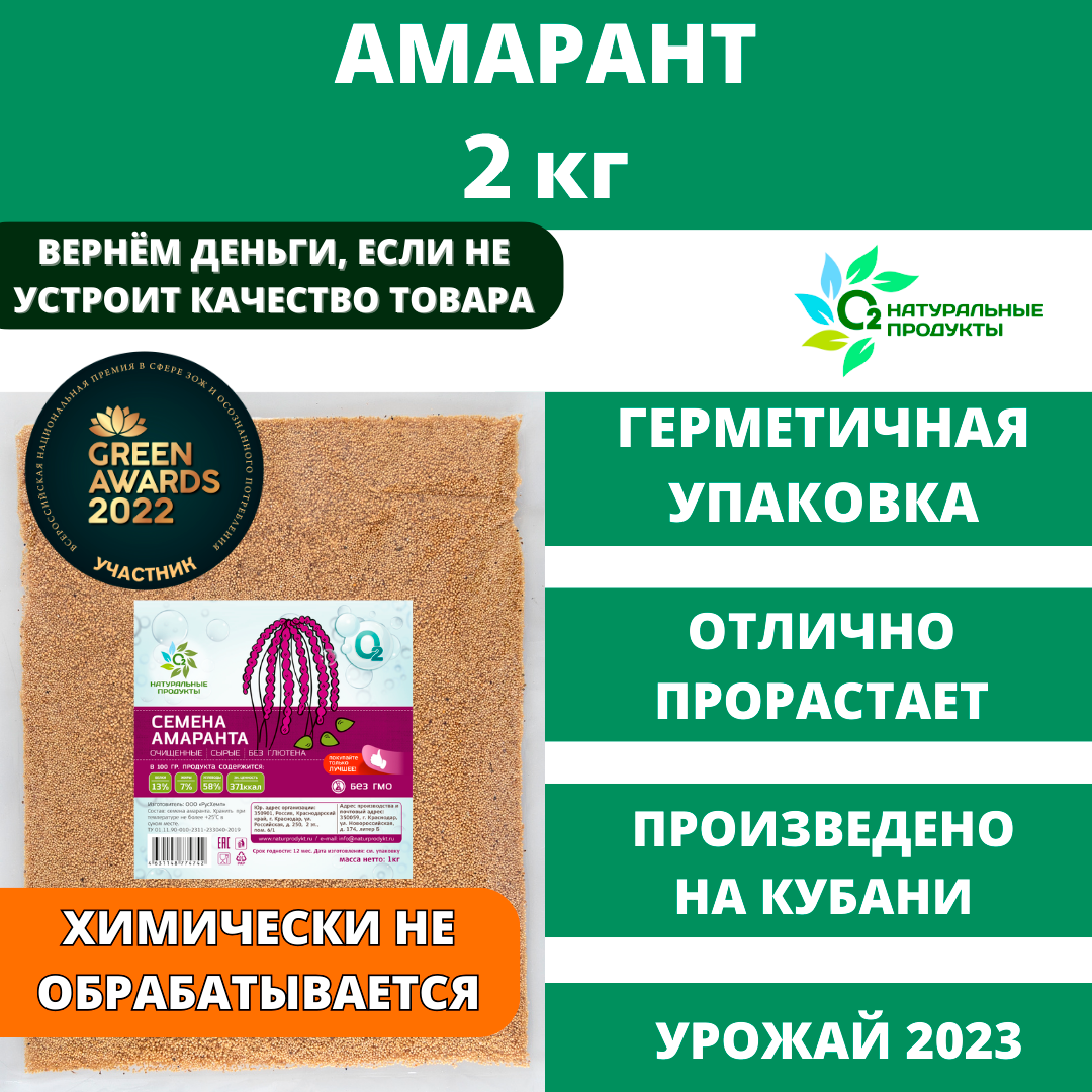 10 цен на Семена Амаранта 2 кг, амарантовая крупа О2 Натуральные продукты