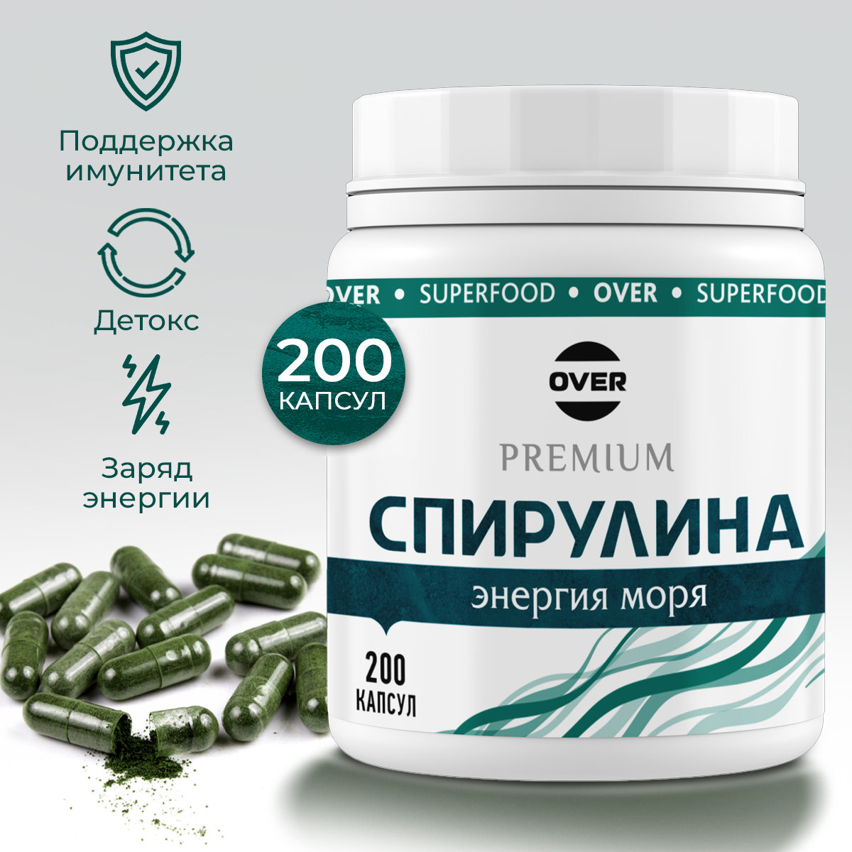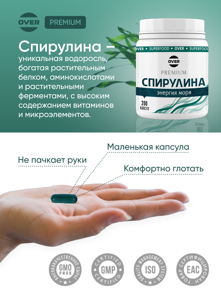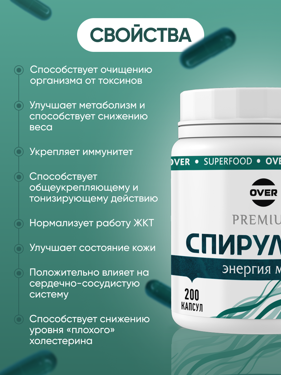 Спирулина, спирулина в капсулах, для похудения, детокс, очищение организма, для иммунитета, суперфуд, 200 капсул информация: