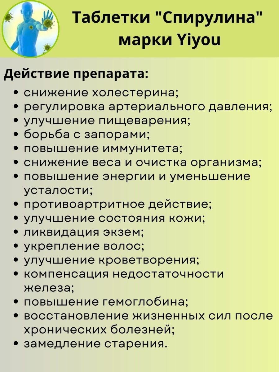 Спирулина (Spirulina Green) Китай. 2000 шт. информация: