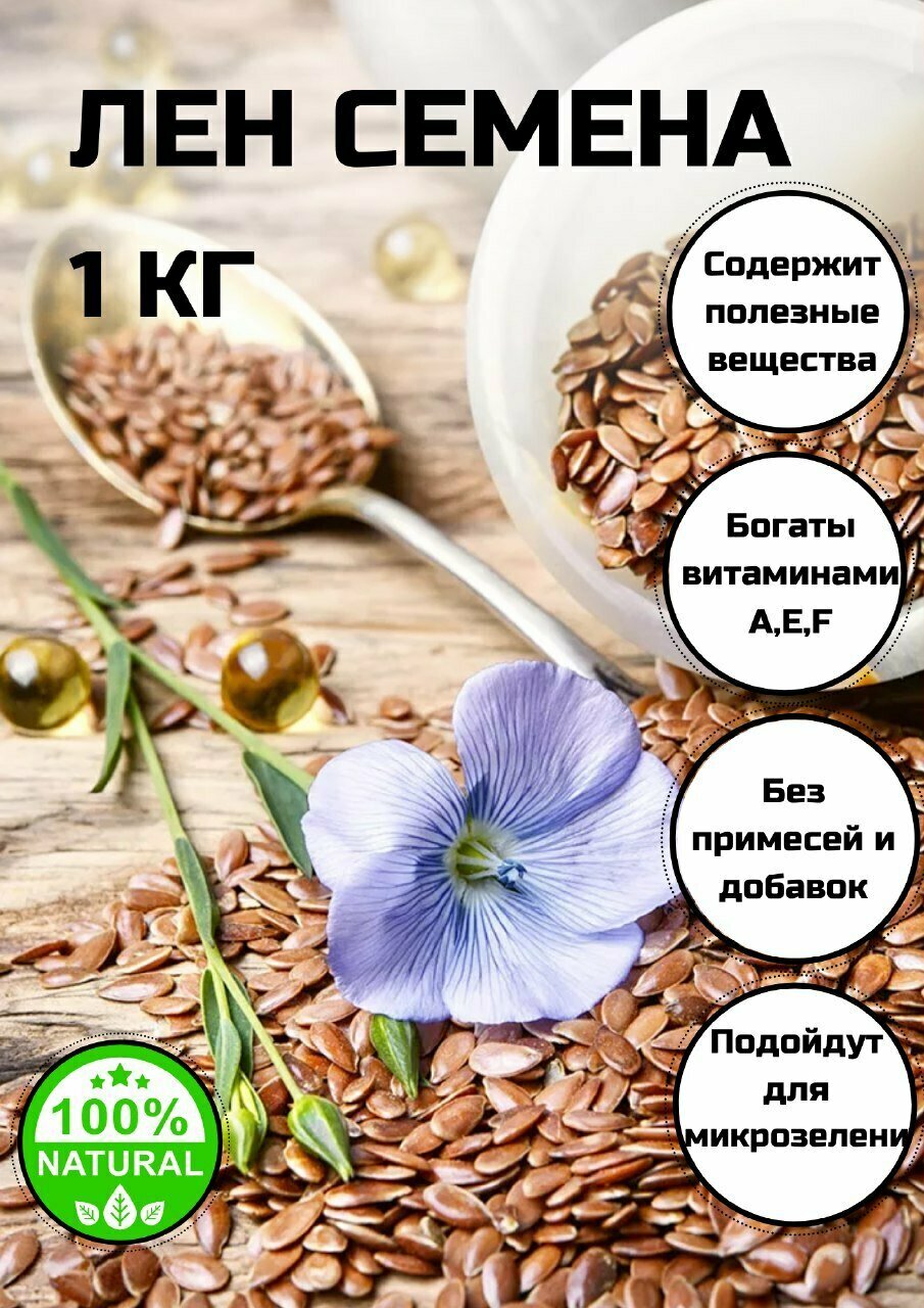 Семена льна коричневого Лен масленичный 1 кг, Льняное семя, продукты для правильного питания и похудения, микрозелень, с Алтайских полей информация: