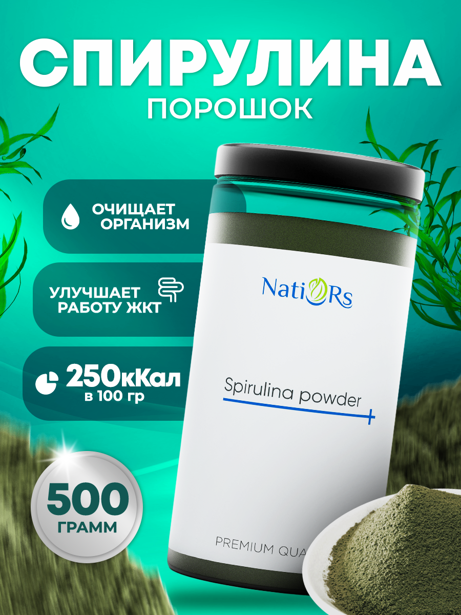 Спирулина порошок Natiors, водоросли, суперфуд, банка 500 гр информация: