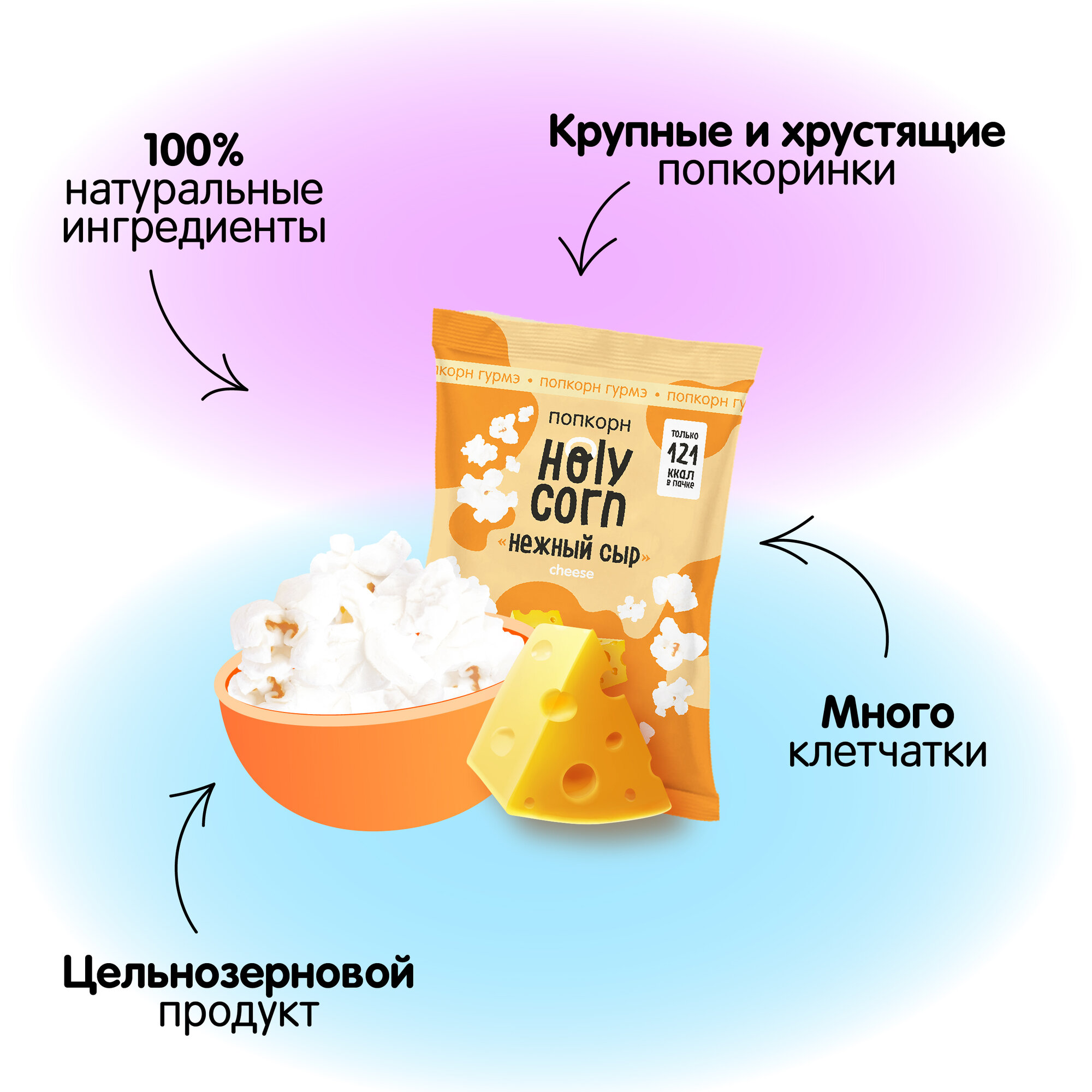 Попкорн готовый Holy Corn "Нежный сыр" Стандартная пачка 25 г х 6 шт информация:
