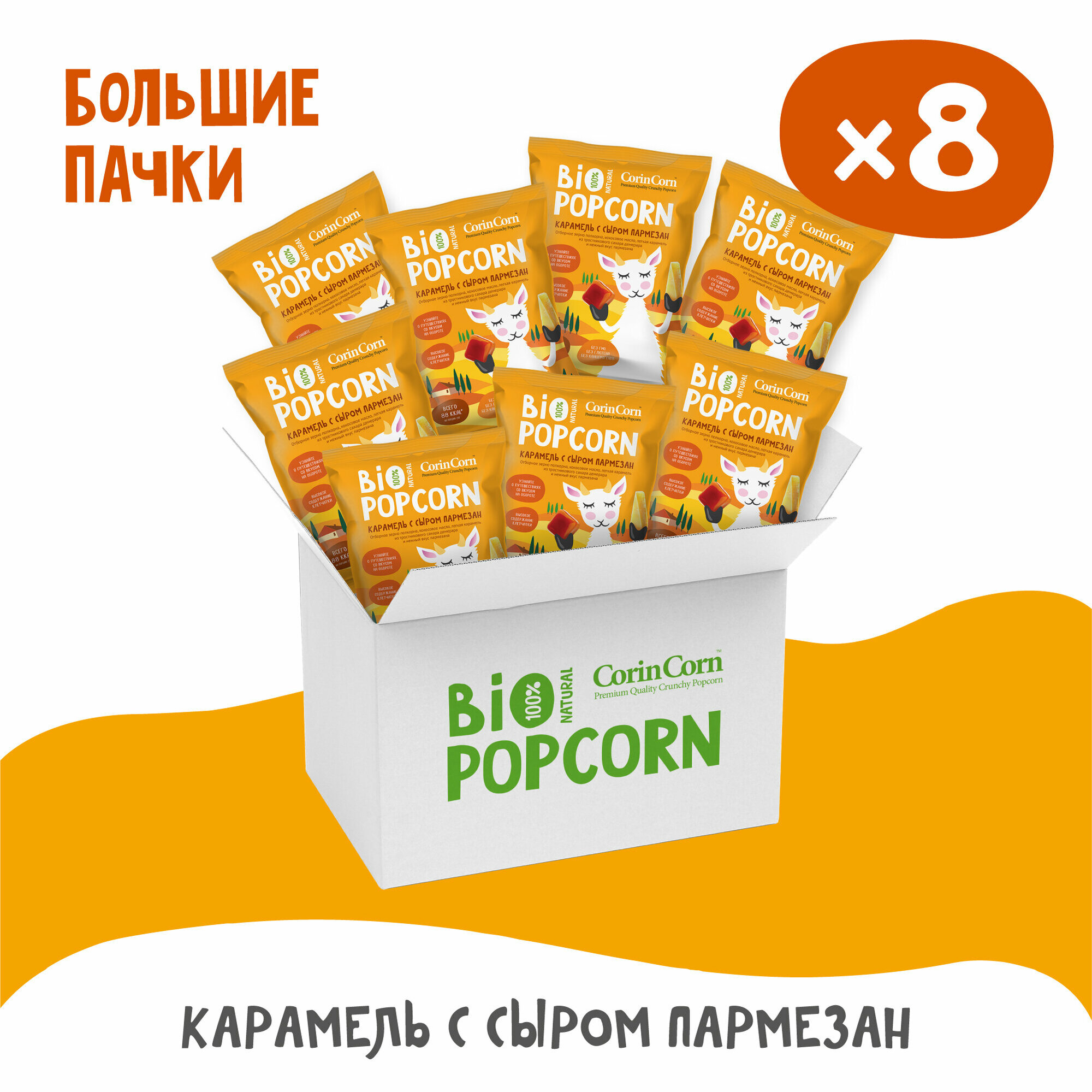 10 цен на Попкорн солёный карамель с сыром пармезан 8 пачек х 80 г Bio POPCORN CorinCorn