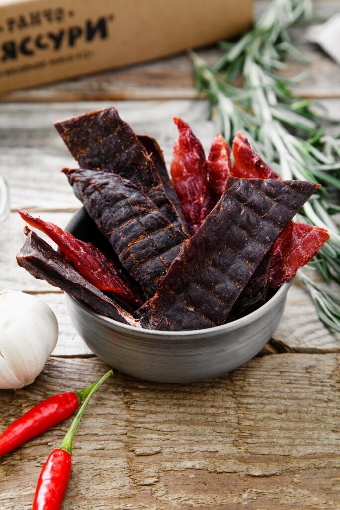 Вяленое мясо Ранчо Мяссури Подарочный набор мужчине Спорт полкило + сто сушеное мясо 600 г информация: