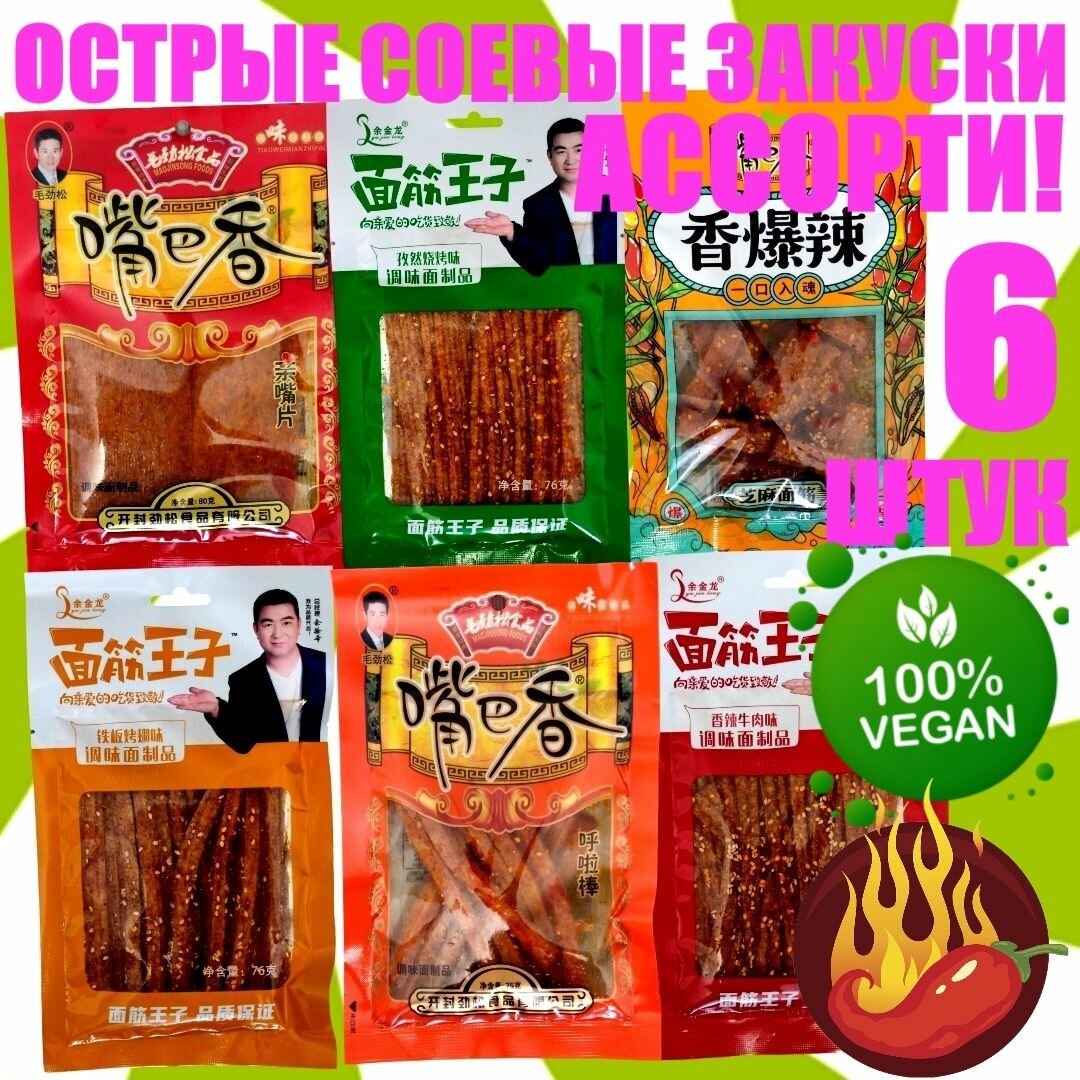 Отзывы на Острые соевые закуски ASIAN HOT SNACKS 6 пряных азиатских палочек латяо, соевое мясо, китайские снэки к пиву / набор острых закусок