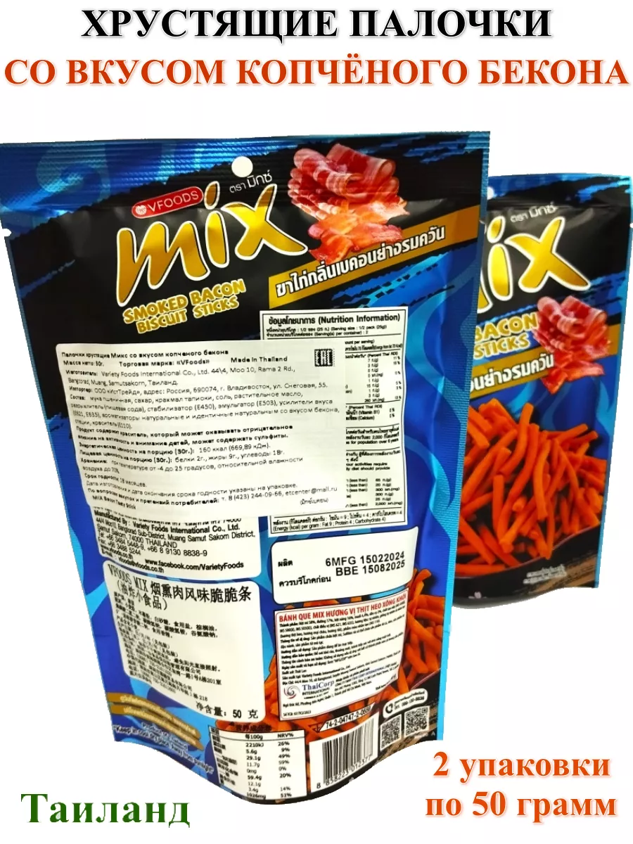 Тайские снеки со вкусом копченого бекона, 2 упаковки информация: