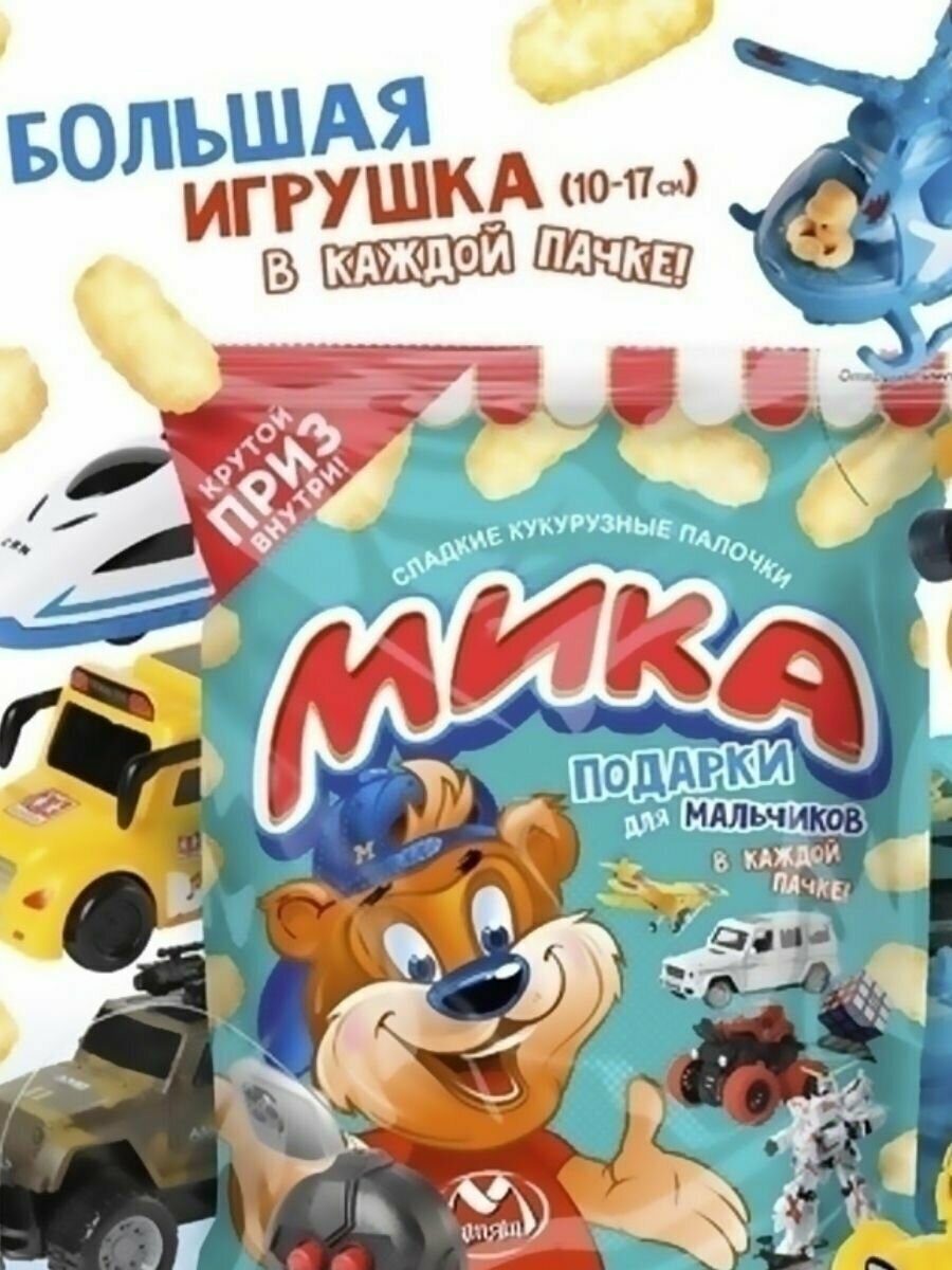 10 цен на Кукурузные палочки с игрушкой для мальчиков Мика 70 г-1шт