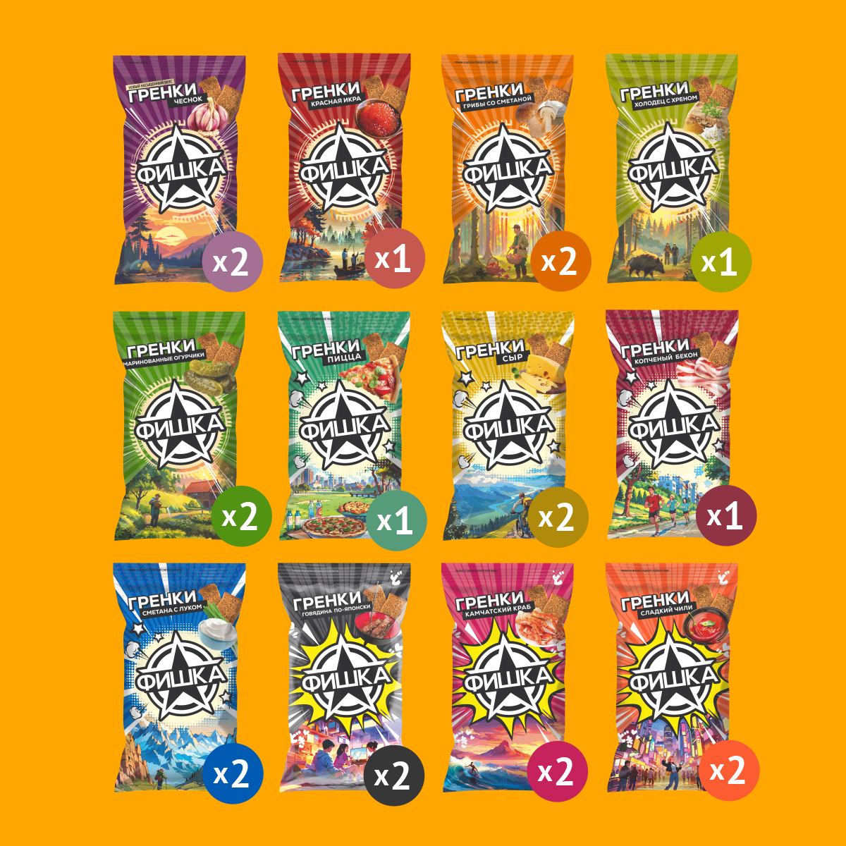 Гренки "Фишка" 120 г ассорти 12 вкусов, 20 шт. информация:
