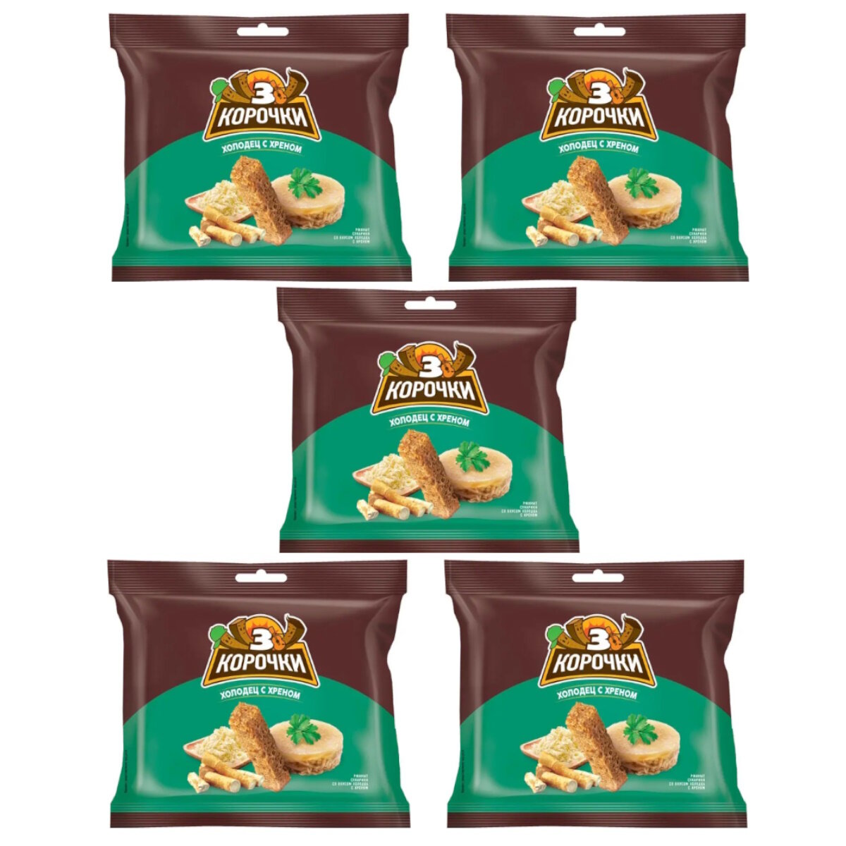 Сухарики ржаные 3 Корочки со вкусом холодца с хреном 5 шт. по 100г информация: