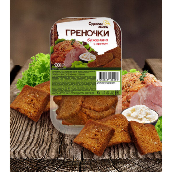 Греночки Буженина с хреном 2шт по 100г."Сурские снеки" информация: