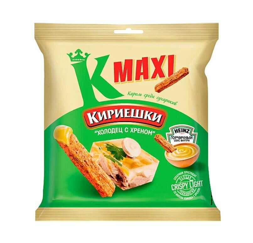 Кириешки Maxi, сухарики со вкусом Холодец с хреном и с горчичным соусом Heinz, 75 гук информация: