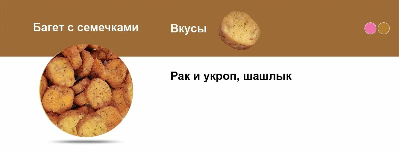 | Состав | Хлеб пшеничный высший сорт, соль поваренная пищевая, масло растительное, усилитель вкуса Е621, семена подсолнечника, ароматизатор пищевой идентичный натуральному |