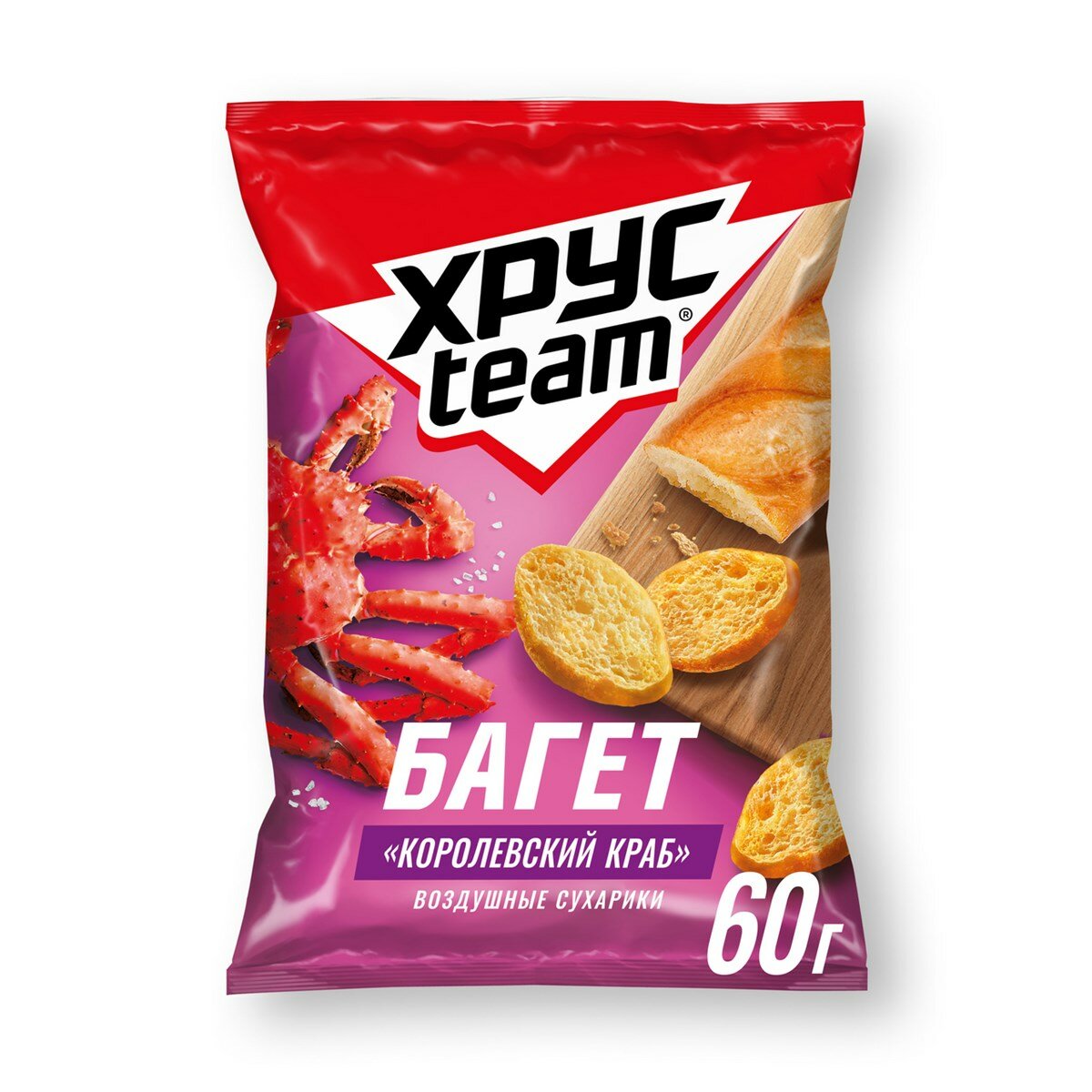 Сухарики Хрусteam Багет Королевский краб, 60г, 10 шт. информация: