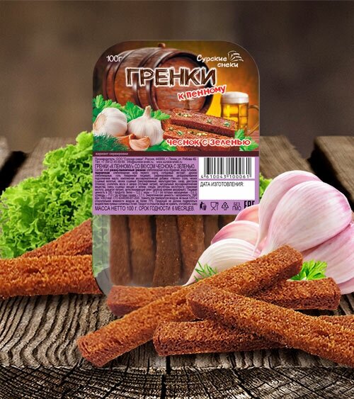 Гренки к пенному Чеснок с зеленью 2шт по 100г."Сурские снеки" информация:
