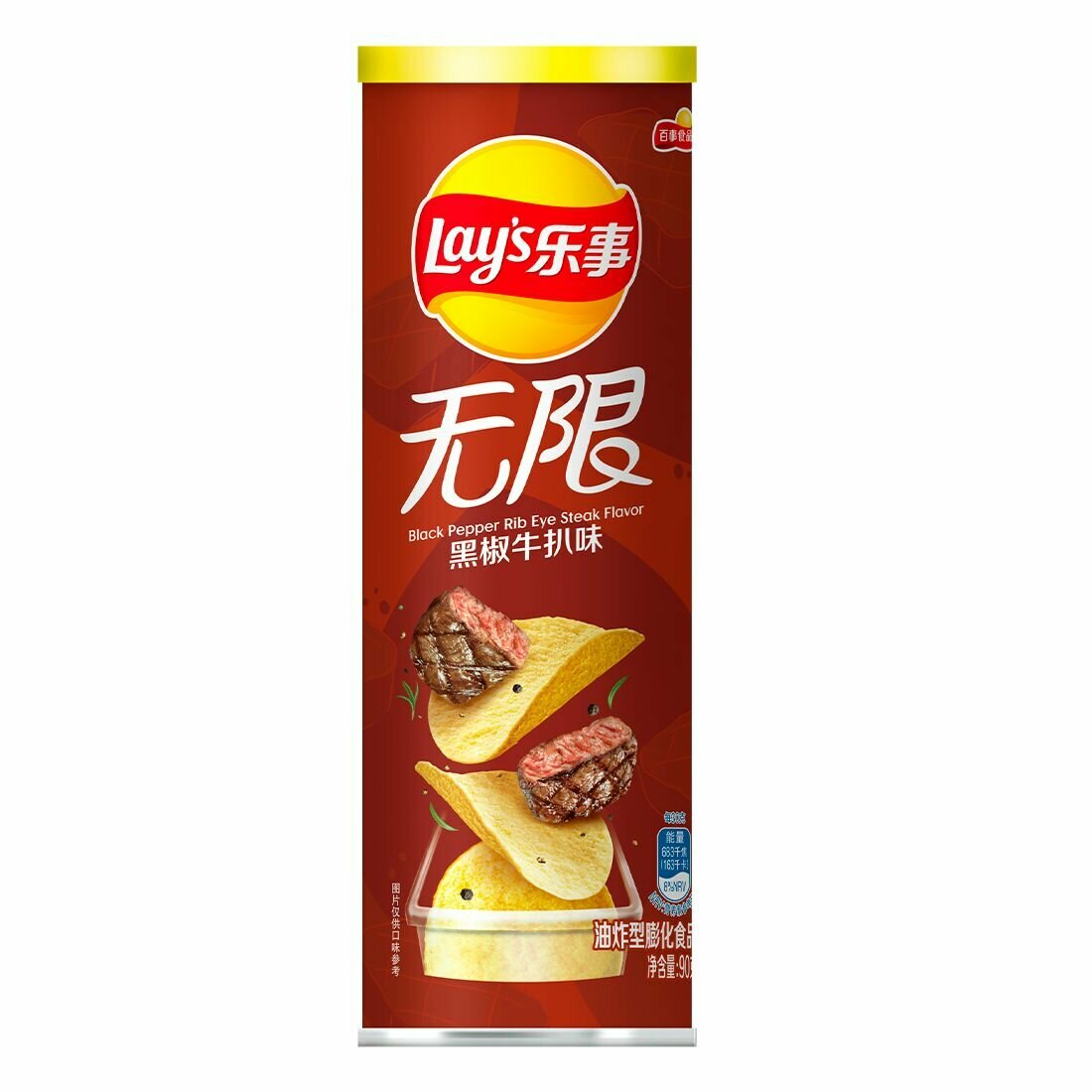 Картофельные чипсы Lay's Stax Black Pepper Rib Eye Steak, со вкусом гриль стейка рибай, 90 гр (Китай) информация: