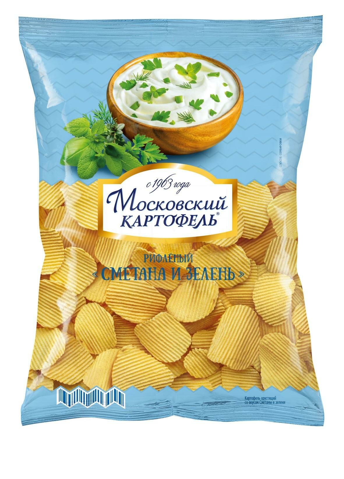 Картофельные чипсы рифленые Московский картофель со вкусом Сметаны и зелени, 70 гр информация: