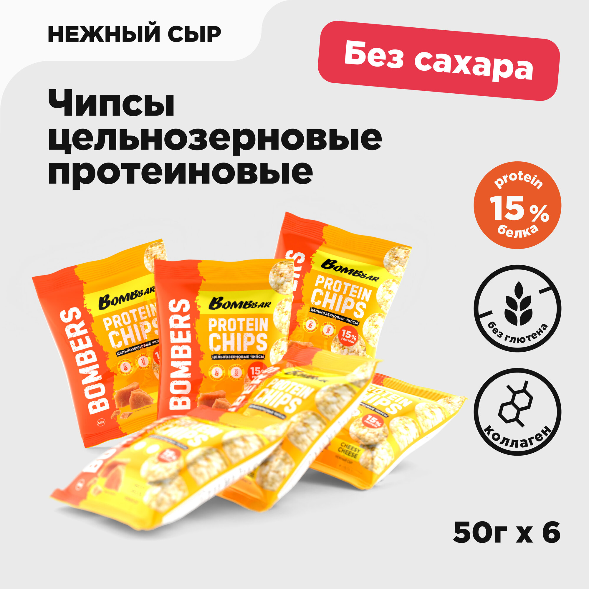 10 цен на Чипсы протеиновые цельнозерновые BOMBBAR со вкусом "Нежный сыр", 6шт х 50г