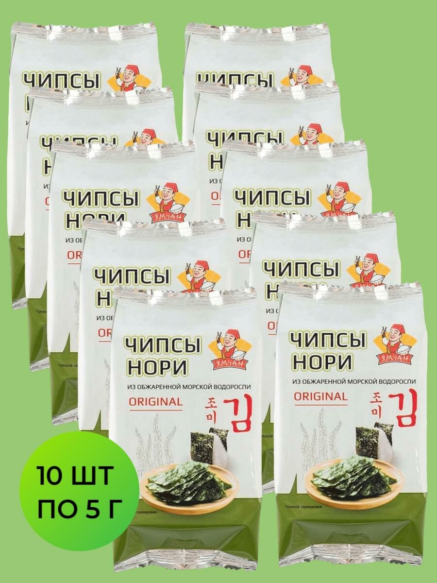 10 цен на Чипсы Нори Ямчан из обжаренной морской водоросли, 10 шт по 5 г