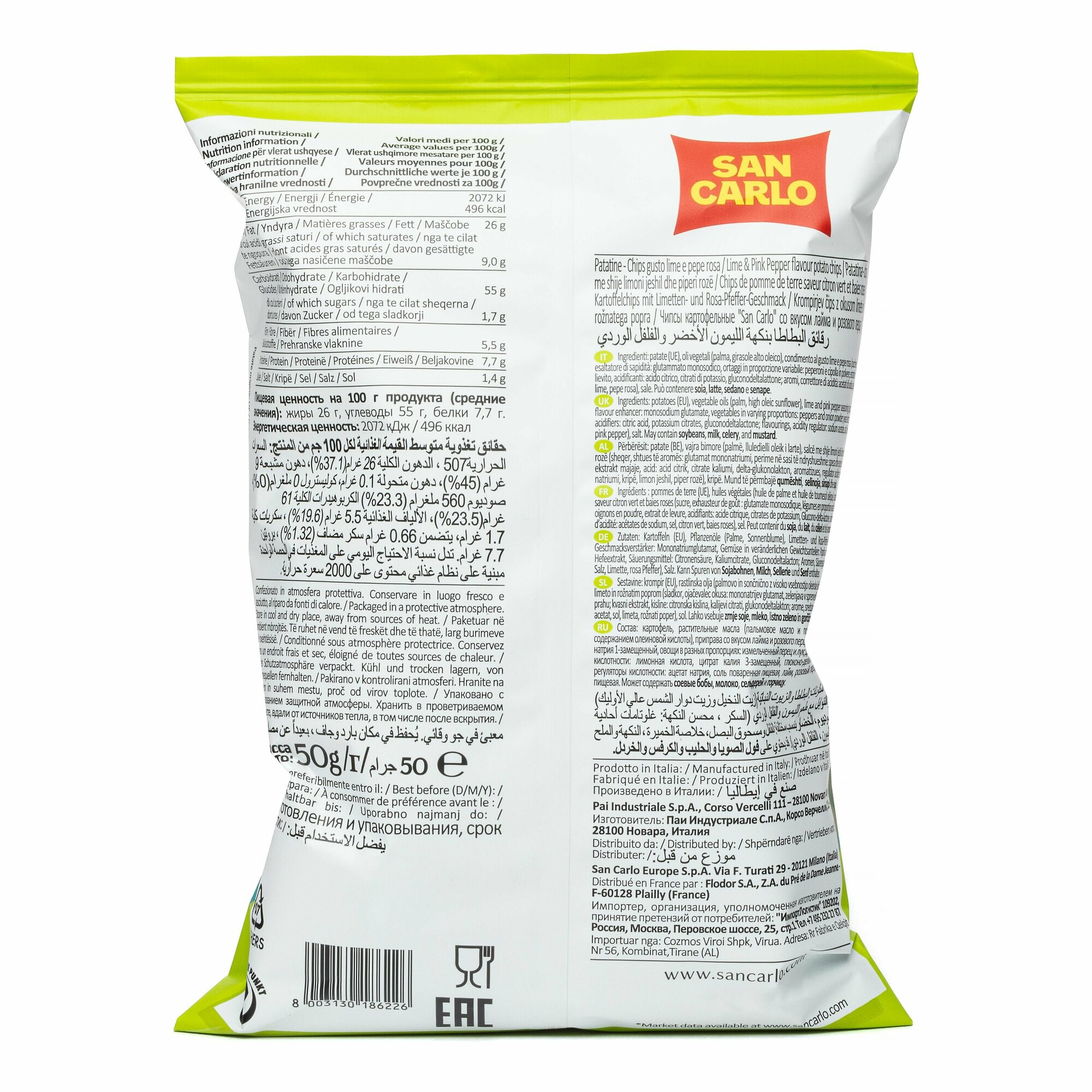 Чипсы San Carlo картофельные со вкусом лайма и розового перца, 50 г информация: