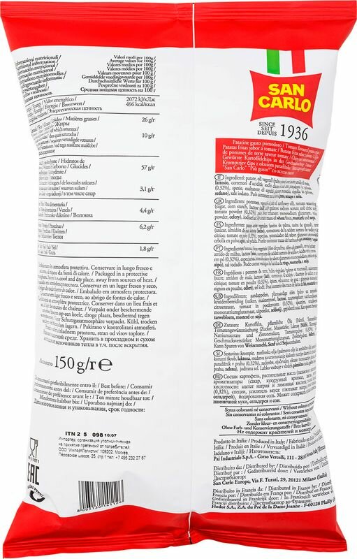 Чипсы картофельные San Carlo со вкусом томата 150 г информация: