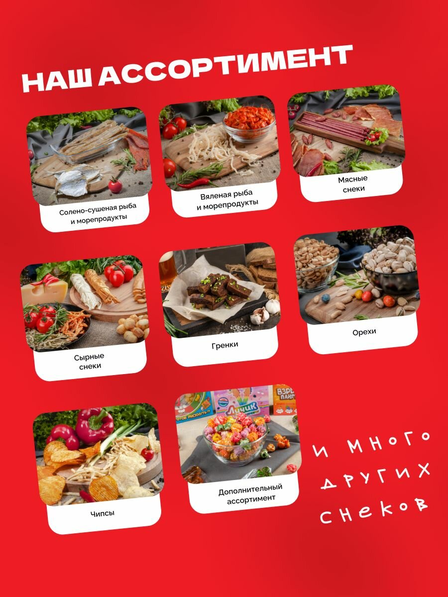 | Вкус | ассорти / бекон / лук-сметана / перец-чили / сметана / сыр |