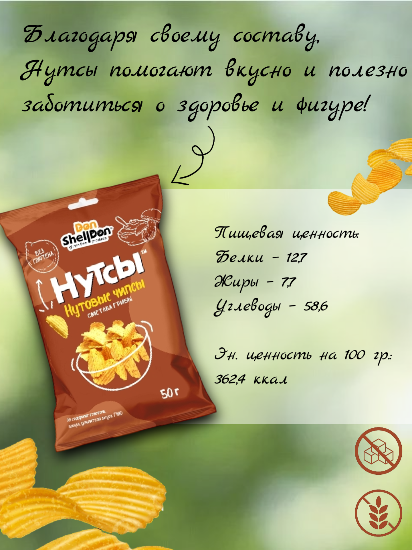 Чипсы нутовые без глютена "Грибы, сметана" 50 гр., 2 шт информация:
