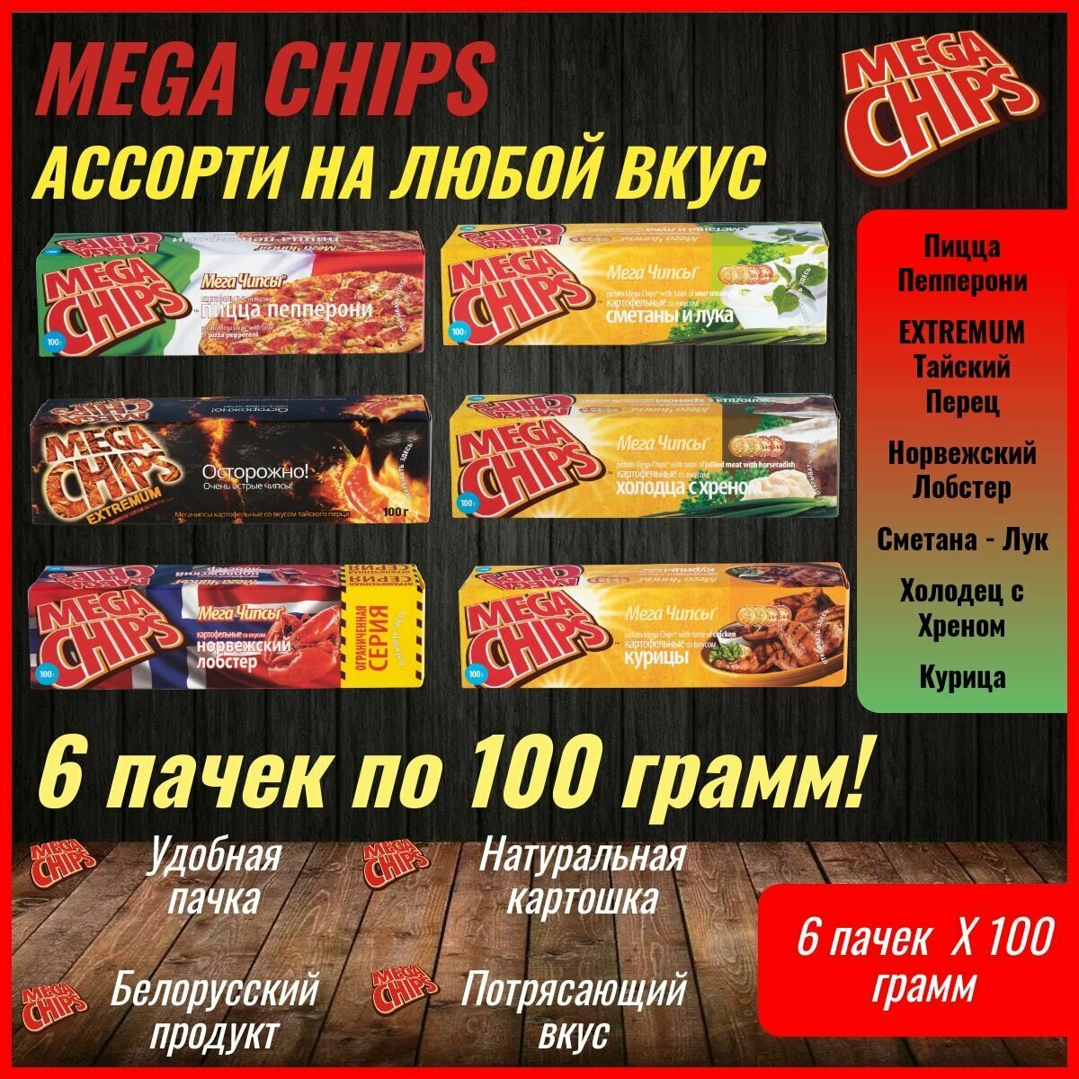 10 цен на Мегачипсы Mega Chips со вкусом ассорти, 6 штук по 100 г