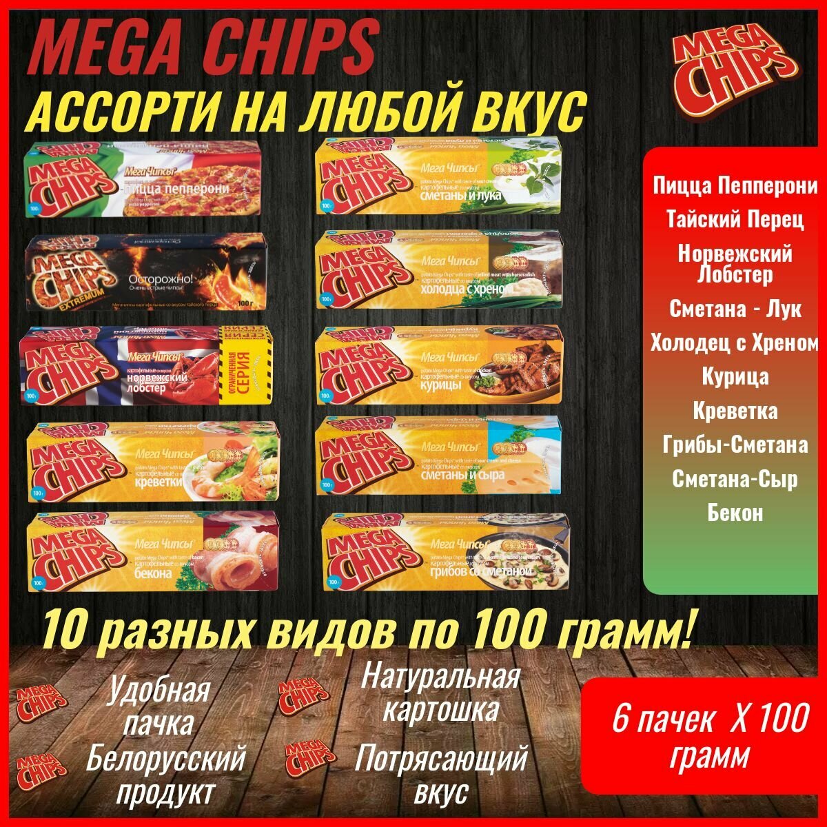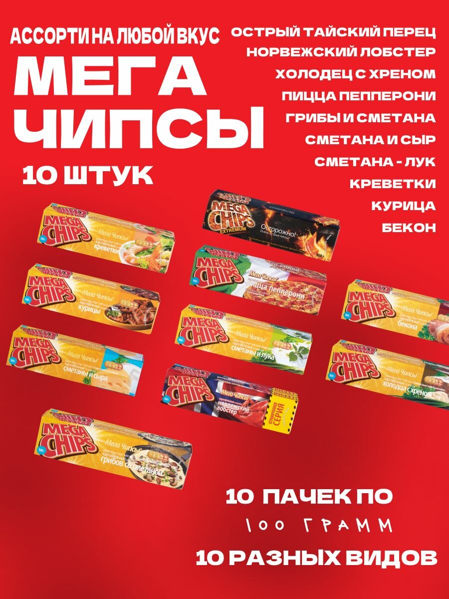 10 цен на Мегачипсы Mega Chips со вкусом ассорти, 10 штук по 100 г