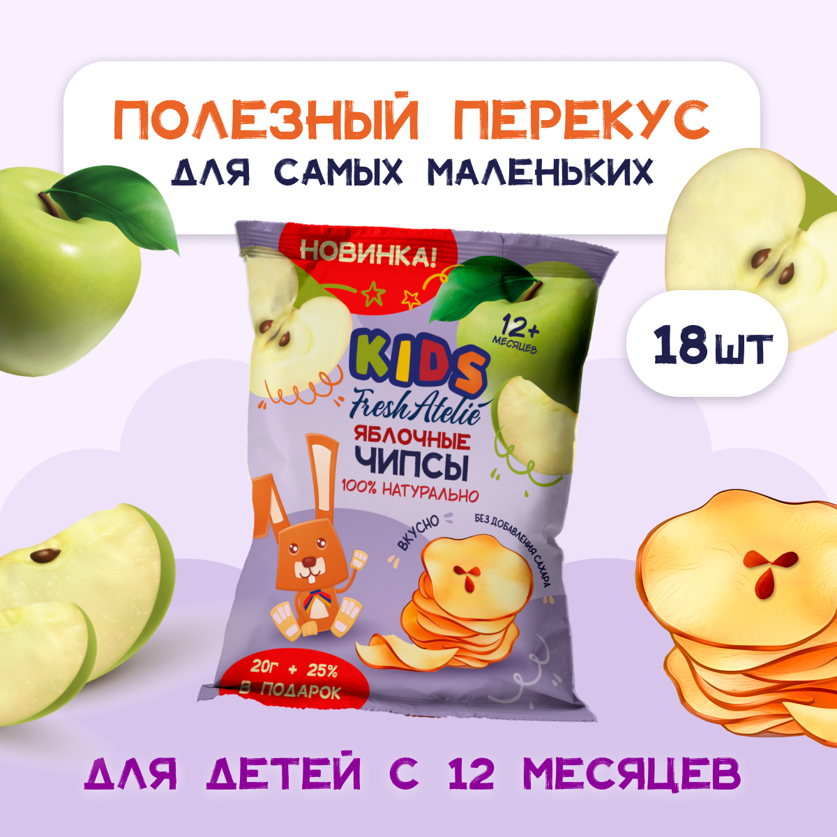 FRESH ATELIE - чипсы яблочные + 25% в подарок с 12 мес, 2 5г, 9 штук информация: