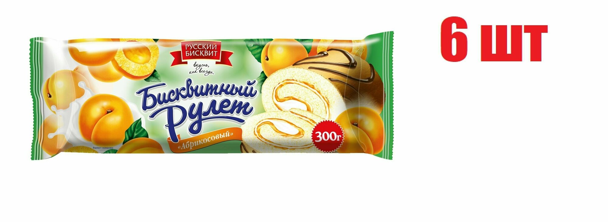 Рулет бисквитный Абрикосовый "Русский бисквит" 300 г 6 шт информация: