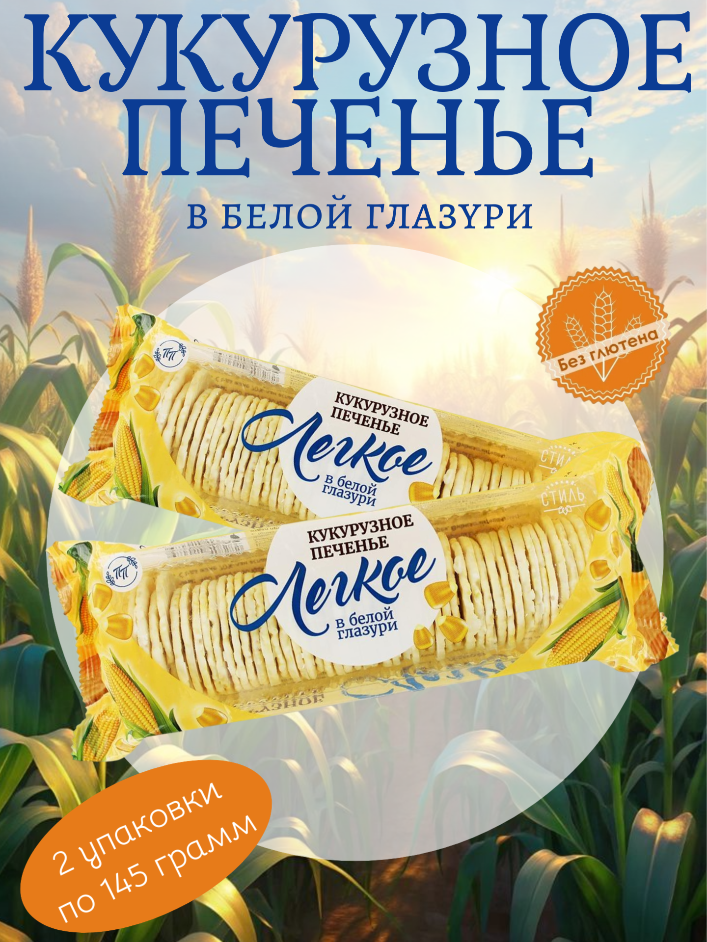 Печенье кукурузное в белой глазури "Легкое" без глютена, 145 гр. (Сладомир)2 шт. в наборе информация: