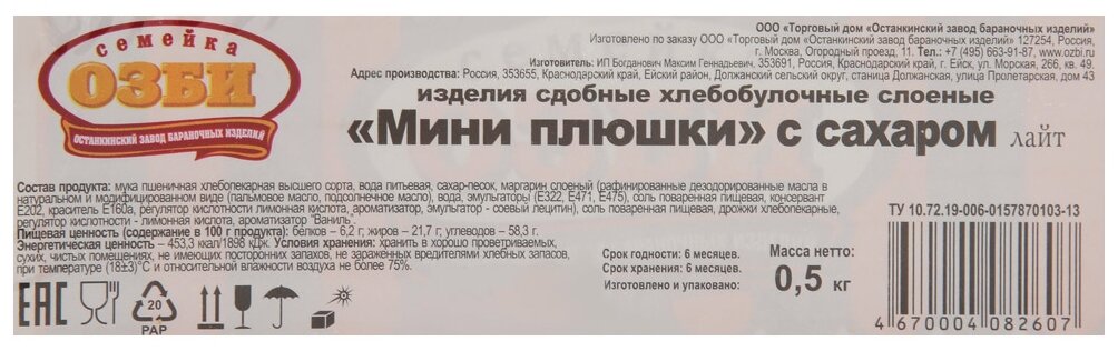 Печенье слоеные Семейка озби Мини плюшки с сахаром, 500г информация: