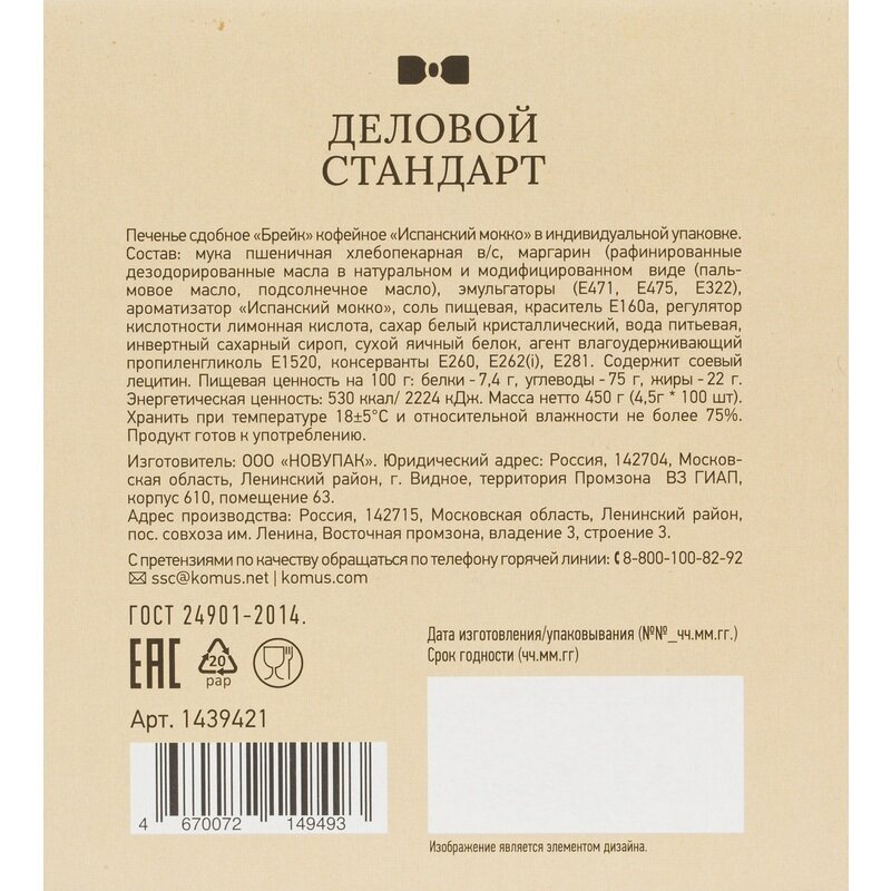 Печенье Деловой стандарт Испанский Мокко(инд.упаковка), 450г информация: