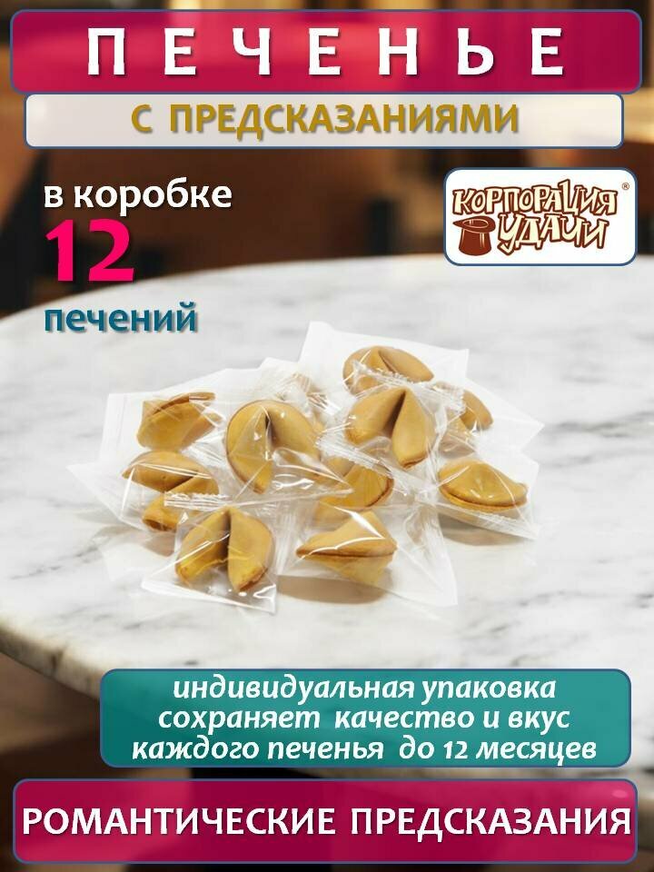Печенье с предсказаниями счастья, 12 штук. Корпорация удачи. Подарок. Корпорация удачи