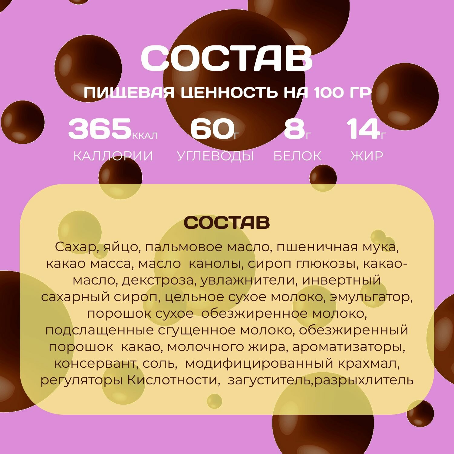 | Углеводы в 100 г | 60 г |