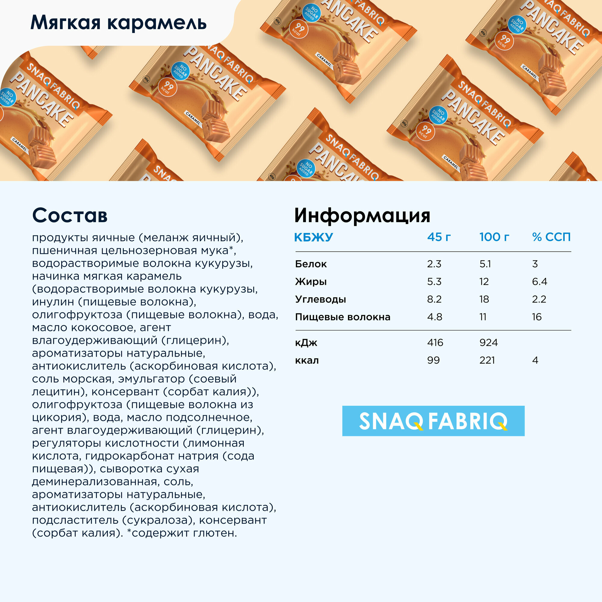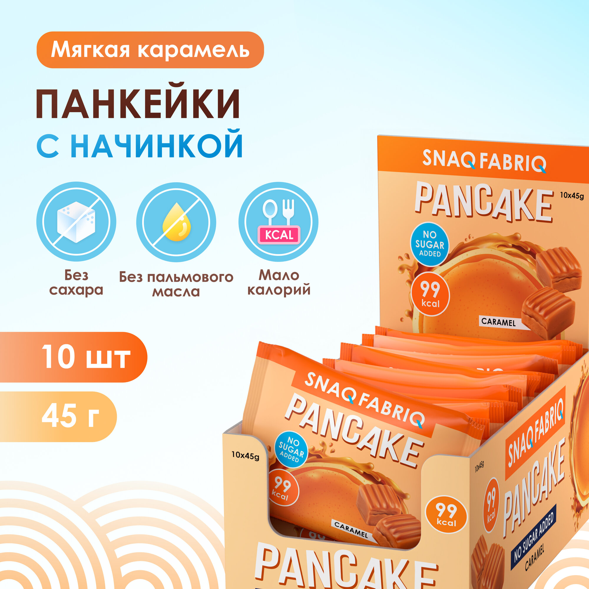 Панкейки с начинкой без сахара SNAQ FABRIQ Мягкая Карамель, 10шт х 45г информация:
